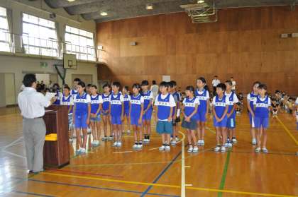 陸上部員、1人ひとりに、記録賞を渡しました。