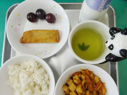 麦ごはん 牛乳 マーボ豆腐 春巻き 巨峰