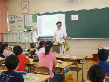 5年生は、ALTによる授業でした。今日から、ALTの教師が交代しました。