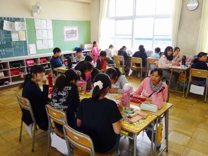 今日は、なかよし遠足の予備日でしたので、弁当でした。とても楽しそうに食べていました。