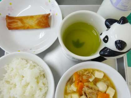 ごはん 牛乳 豆腐の中華飯 春巻き ココアパウダー