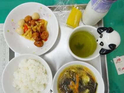 ごはん 牛乳 わかめスープ さけ団子の甘酢あんかけ 冷凍パイナップル