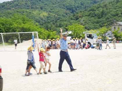 1、2年生は、道路の歩き方、横断歩道の渡り方を教えていただけました。