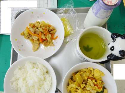 ごはん 牛乳 高野豆腐の卵とじ(高野豆腐のうま煮) 肉野菜いため 冷凍パイナップル