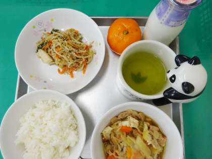 ごはん 牛乳 豚丼の具 おひたし 冷凍みかん