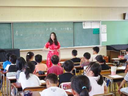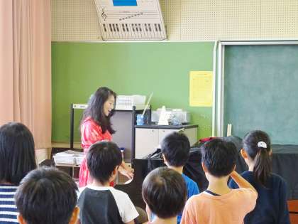4年生対象に、声楽家のオペラ歌手の方を講師にお招きして、音楽のすばらしさをお話ししていただくとともに、技術指導もしていただけました。