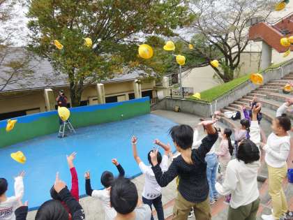 恒例の帽子投げを行いました。