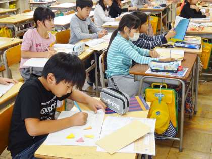 3年生は、算数で、図形について学習していました。