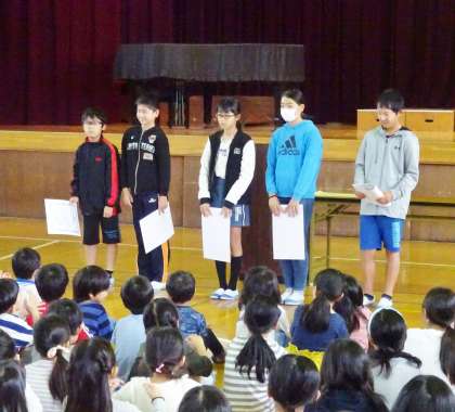 ブロック陸大会で優秀な成績を収めた子の表彰を行いました。