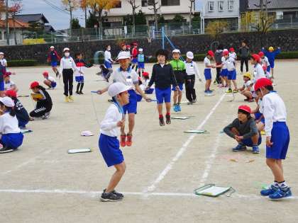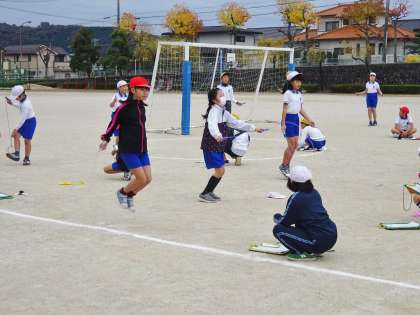 個人で、何回跳べるかを記録しあっこしました。