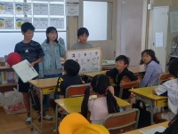 昼放課、たくさんの児童と先生が、元気に運動場で遊んでいました。