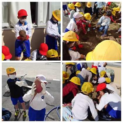 顔よりも大きなものから手の指と同じ大きさのものまで、様々なサツマイモが収穫できました。