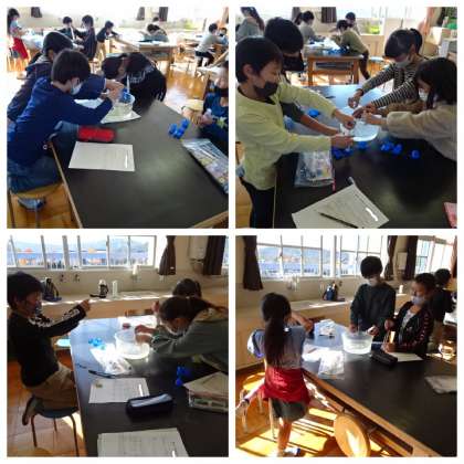 11月17日(水)、4年生は理科の授業で「とじこめた空気と水」の実験を行いました。注射器にとじこめた水を圧縮して、体積の変化や手ごたえなどについて調べました。