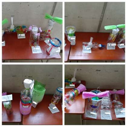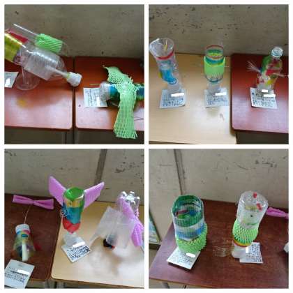 3年生の教室前廊下には、図工で制作した「ゆめいろランプ」の作品が展示されています。ペットボトルを活用し、いろいろな工夫がされたランプが並んでいます。