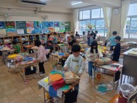 10/22 図工「くしゃくしゃ ぎゅっ」(2年)