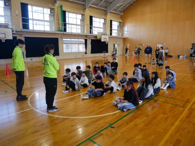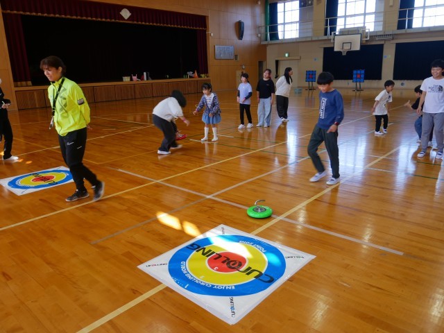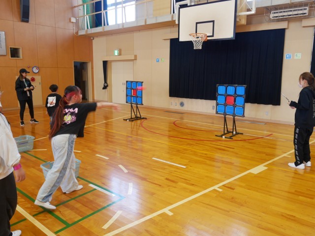 総合体育館の職員をインストラクターとして招き、「逃走中」や「カローリング」「ストラックアウト」などの種目に親子で参加しました。