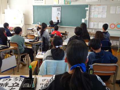 書道科では、書の先生に教えていただきながら、「旅立ちの時」の練習をしていました。