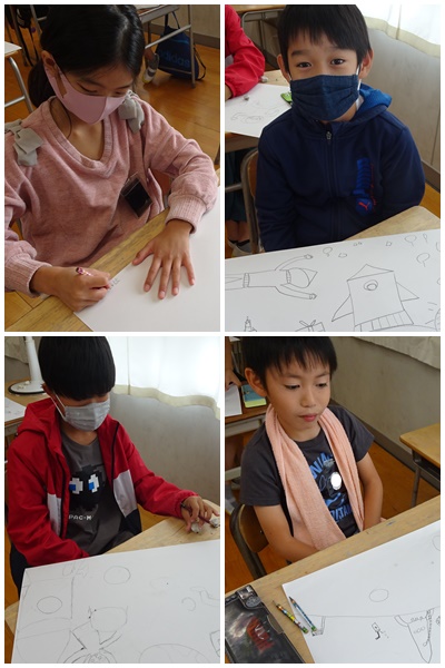 図工では、読書感想画の下描きをしていました。