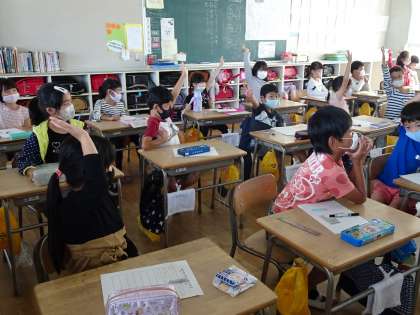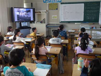 町探検に行ってきたので、発見したものをみんなで話し合っていました。