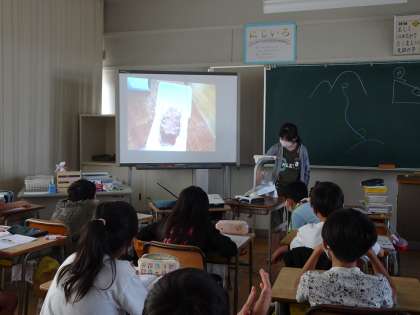 理科では、流れる川の様子を演示実験で確かめたり、映像を見てグループで気づいたことを話し合ったりしていました。