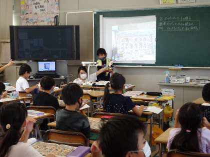 社会では、スーパマーケットの様子で気づいたことを教科書で見ながら、考えていました。