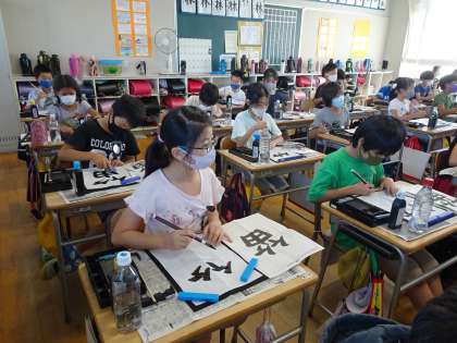 書道科では、前回の練習で直した方が良いところ、注意して「笛」の字を書いていました。