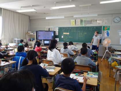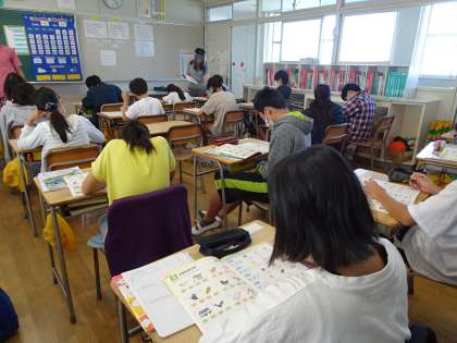 外国語科では、発音を聞いてどんなアルファベットになるか、聞き取りをしていました。