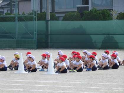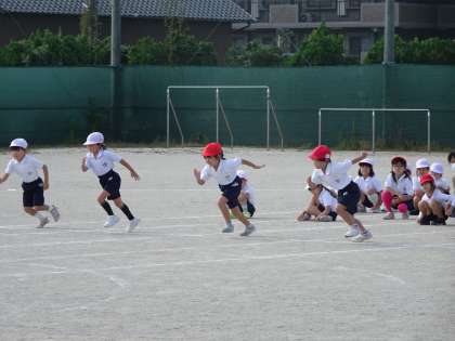 体育では、かけっこの練習をしていました。並び方や走り方も上手になりました。