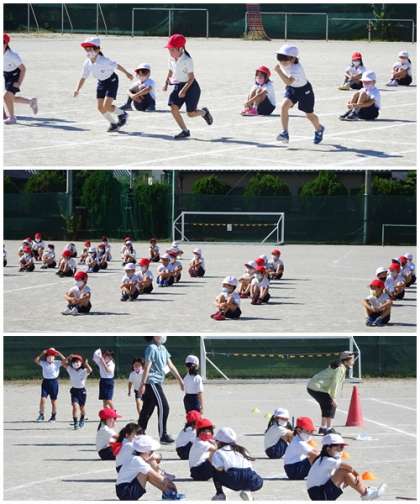 体育では、授業参観で行う徒競走の練習をしていました。ソーシャルディスタンスを上手にとりながら、待てるように気をつけていました。
