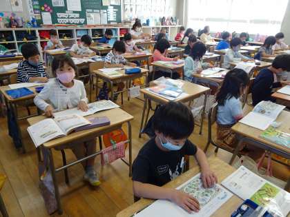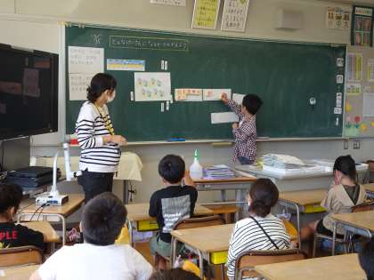 算数では、「ふえたりへったり」の単元で、どんな式になるのかを考えながら、学習していました。