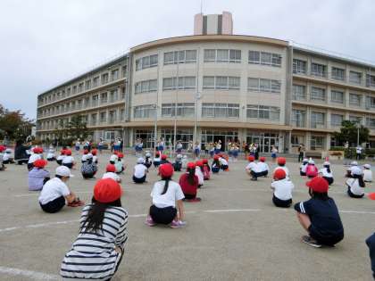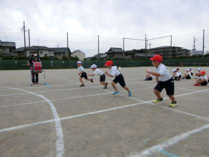 小雨が降ってはいますが、時間通りに各学年進めています。