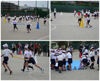 準備体操をした後、「かけっこ」を行いました。「UFOレース」は上手にフラフープを持ってコーナーを回っていました。「鬼滅の刃」の曲にのってのダンスも真剣に踊れました。