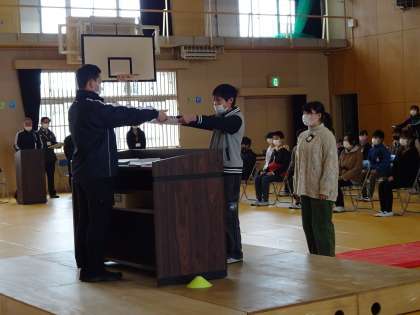 卒業証書の受け取り方を練習していました。卒業式がいよいよ来週になりました今週金曜日に行われる予行練習に向けて、短い時間で集中して頑張っています。