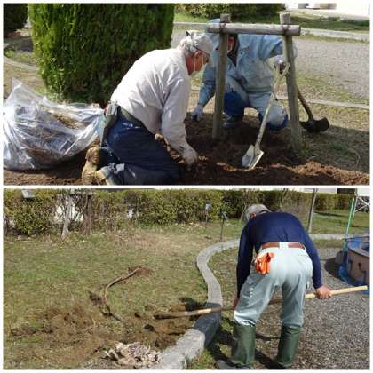 市の現業員さんに枝や幹が枯れていたものを、根から引き抜いていただきました。なかなか大変な作業ですので、お願いしたところ上手に抜いていただけました。