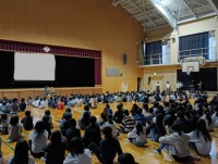 体育では、マット運動の練習をしていました。とび前転に取り組んでいました。