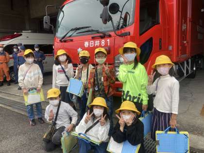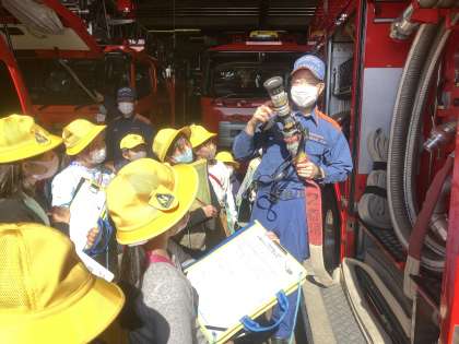 3年生は、消防署見学に行ってきました。4台の車両を実際に見せてもらい、消防車にはいくつか種類があることを学びました。消防車や救急車の中には、さまざまな道具があり、初めて見た児童からは驚きの声が上がっていました。また、疑問に思ったことを積極的に質問をして、学びを深めている姿も見られました。