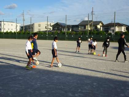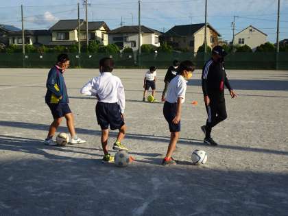 授業後は、風も強く寒くなりましたがサッカー部の子どもたちも、いろいろな技を教えてもらいながら、練習を頑張っています。
