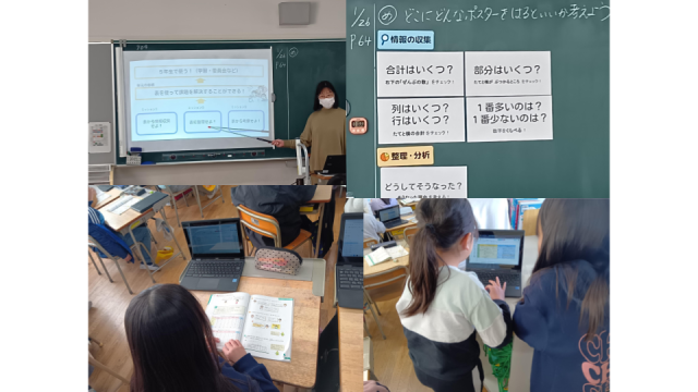 お互いの考えを交流させながら、一生懸命に表を完成させていく姿は、すっかり高学年の頼もしさを感じさせてくれました。