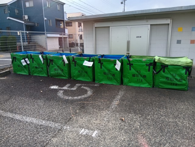 現在、校内での工事を行っているため、いつもの集積場所から変更しております。「正門入口」からお入りいただき、指定の場所へお願いいたします。回収できるもの