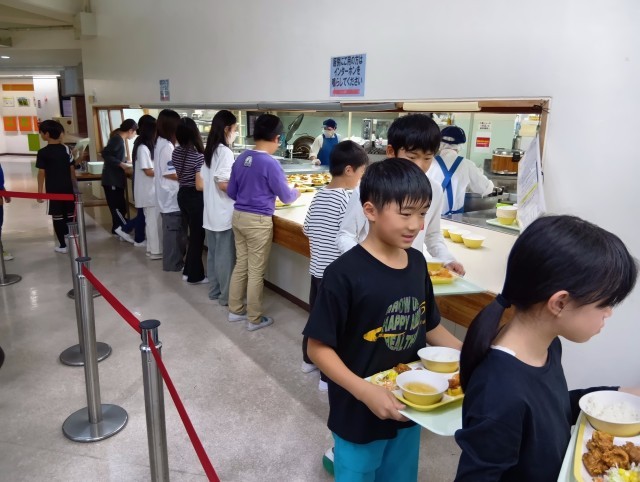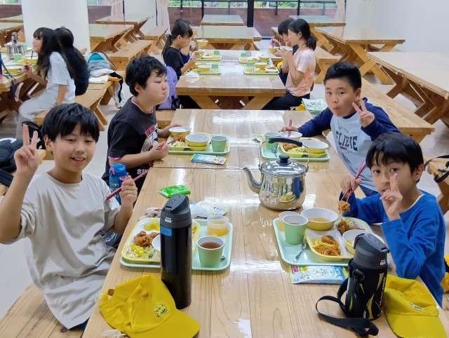 食堂での初めての食事を、わくわくしながら嬉しそうに食べていました。