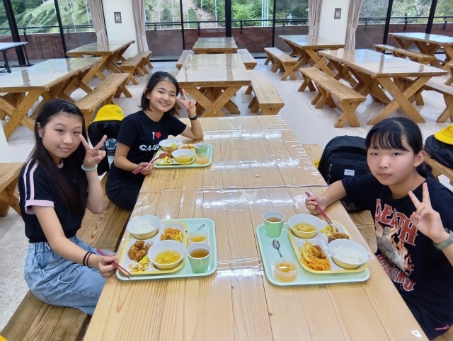 野外学習1日目、夕飯とナイトハイクの様子です。