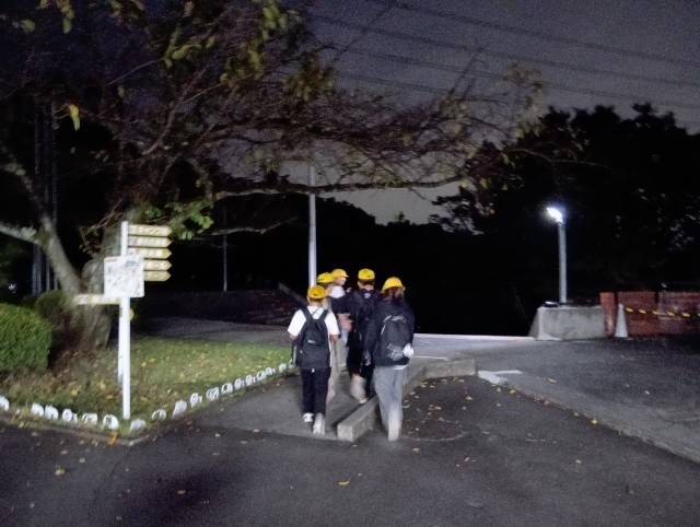 ナイトハイクでは、明かりをつけずに自然の音を聞きながら歩きました。