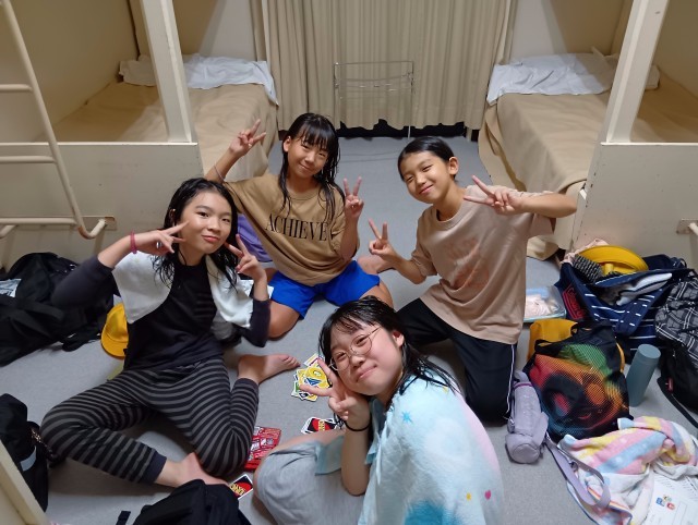 入浴後、部屋で就寝準備や翌日の準備をしたり、カードゲームで遊んだりして過ごしました。