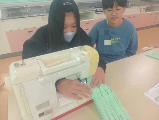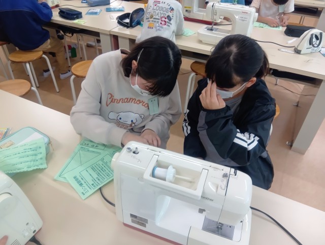 5年生の家庭科の授業で、初めてのミシン学習が始まりました。