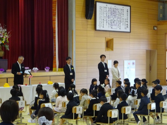 4月8日(水)入学式の様子です。37名の新入生が藤山台小学校に仲間入りしました。大きくてきれいな体育館や、教室の様子に目を輝かせていました。