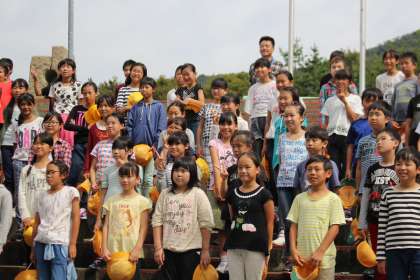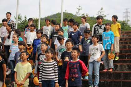 入所式は、高森台小学校のみなさんと野外ステージで行いました。81名みんなとても「やる気」に満ちた表情ですね。
