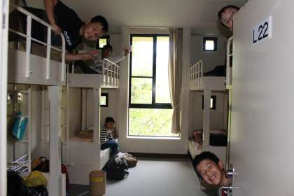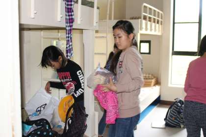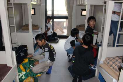 少年自然の家で、初めて自分たちが泊まる部屋に入ったところです。それぞれが、片付けをしたり次の活動の準備をしたりしています。次は野外炊事ですね。