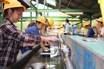 引き続き野外炊事の様子です。お米をあらったら、指をつかって、飯ごうの水量を決めました。