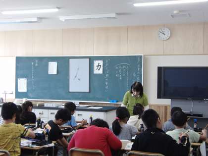 3年生は、特別講師の先生に書の時間教えていただきました。一生懸命練習している様子をご覧ください。