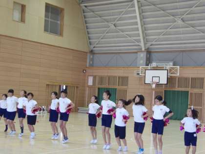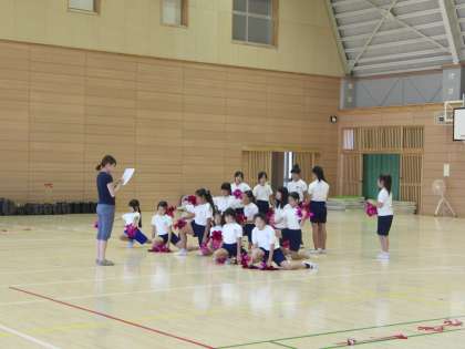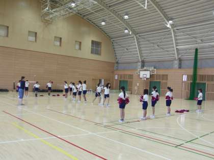 今日は、藤山台中学校のフロアーステージの大きさに合わせて実際に演技してみました。場所や間隔を覚えてくださいね。これからたくさん発表する機会がありますので、大勢の皆さんに見て頂けるといいですね。